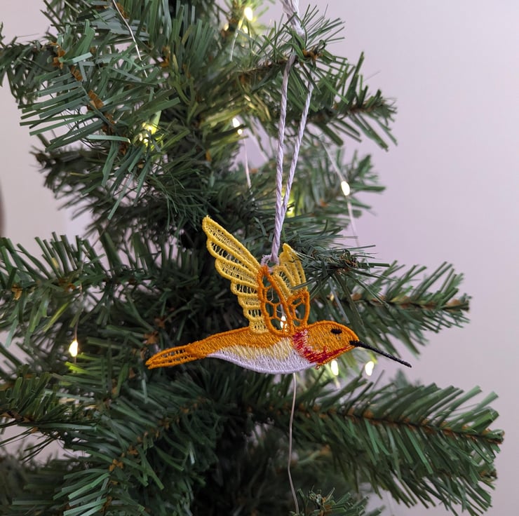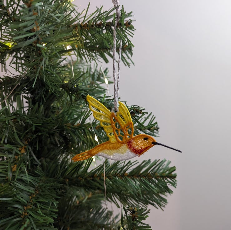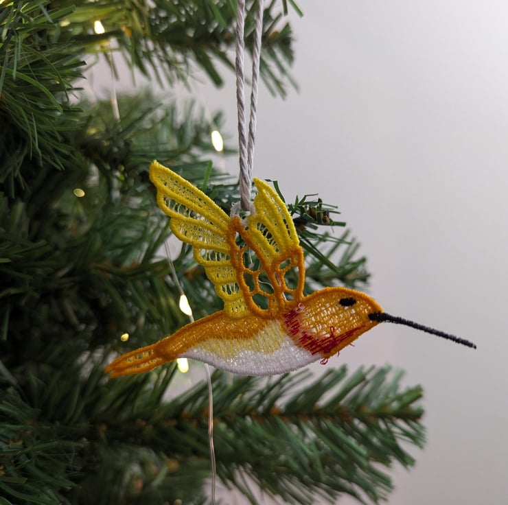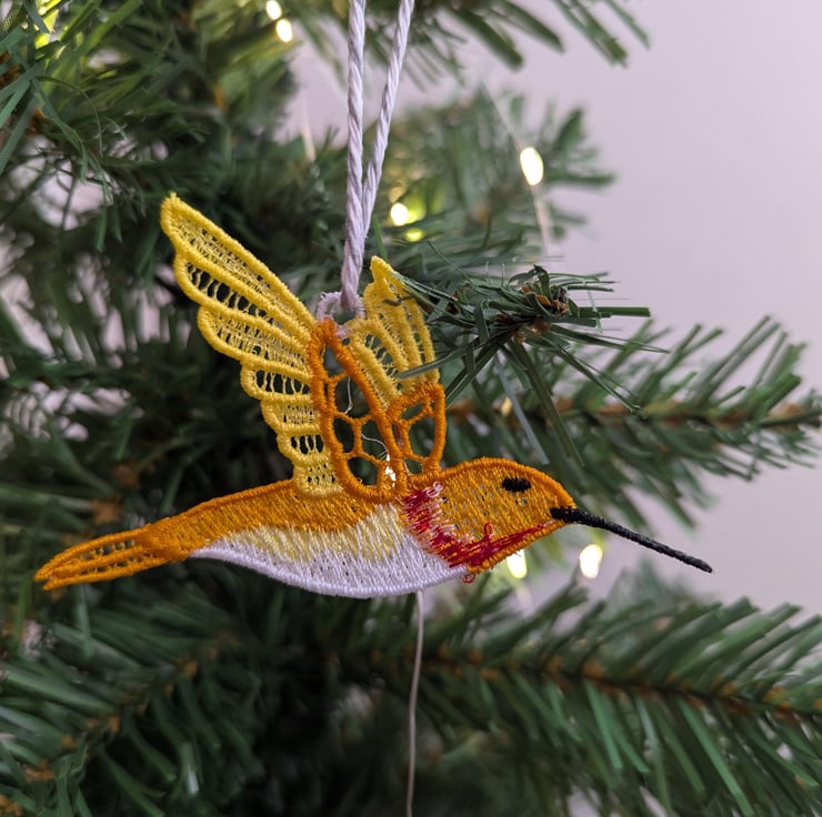Lace Hummingbird Ornament: Machine Embroidery Hanging Decoration