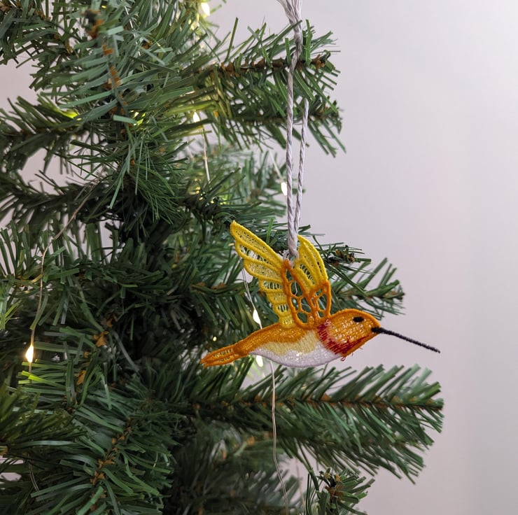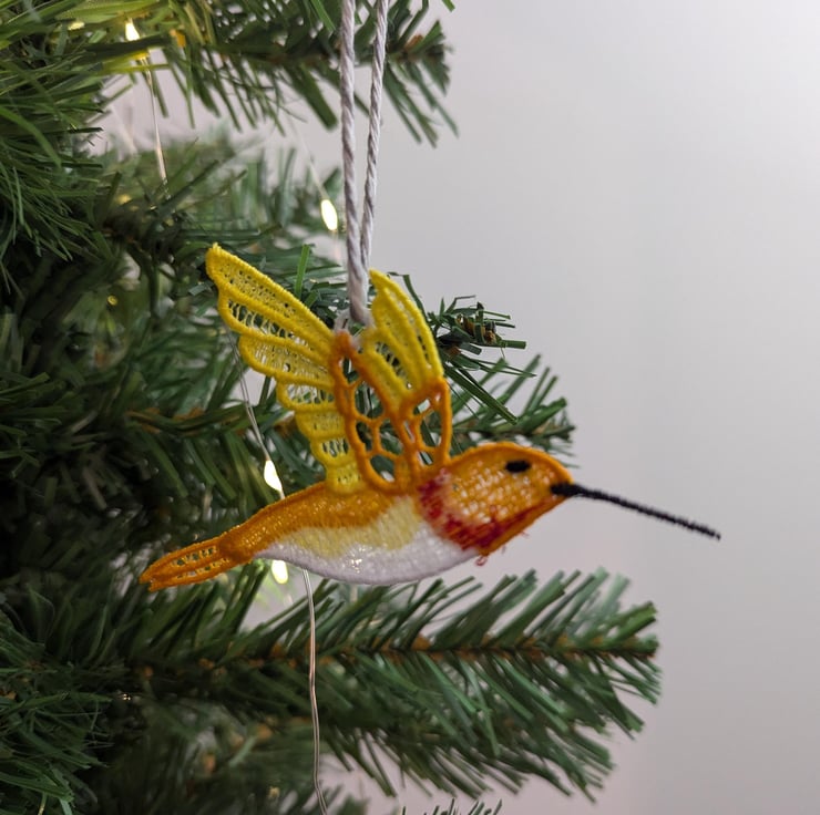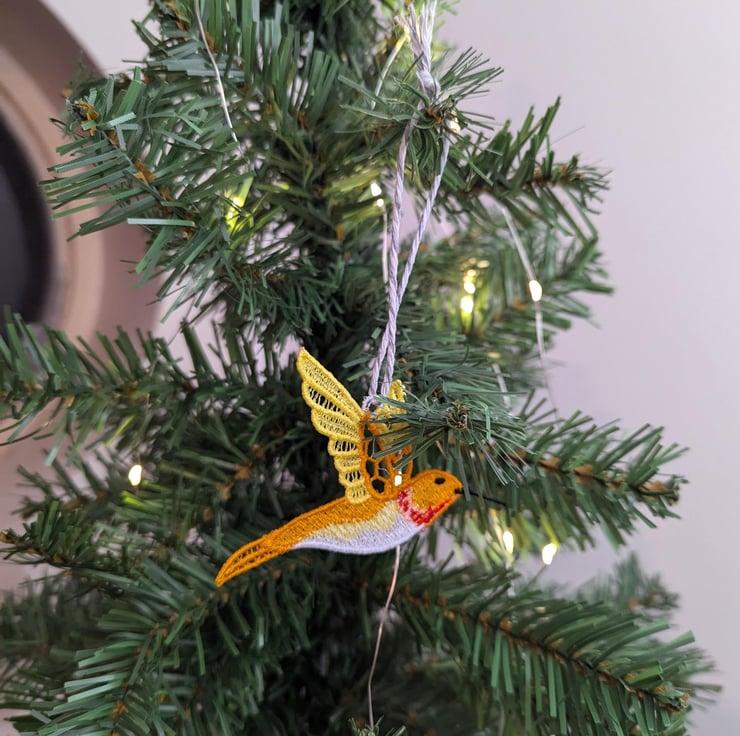 This beautiful Lace hummingbird makes the perfect addition to your tree. Adding a bright pop of colour