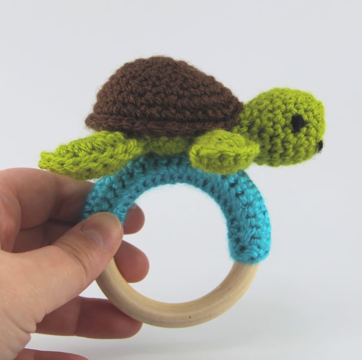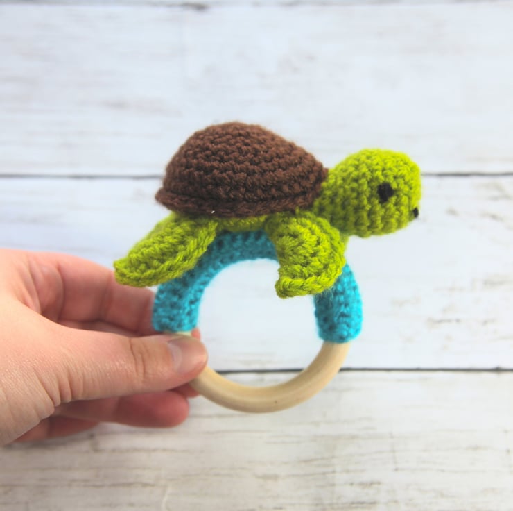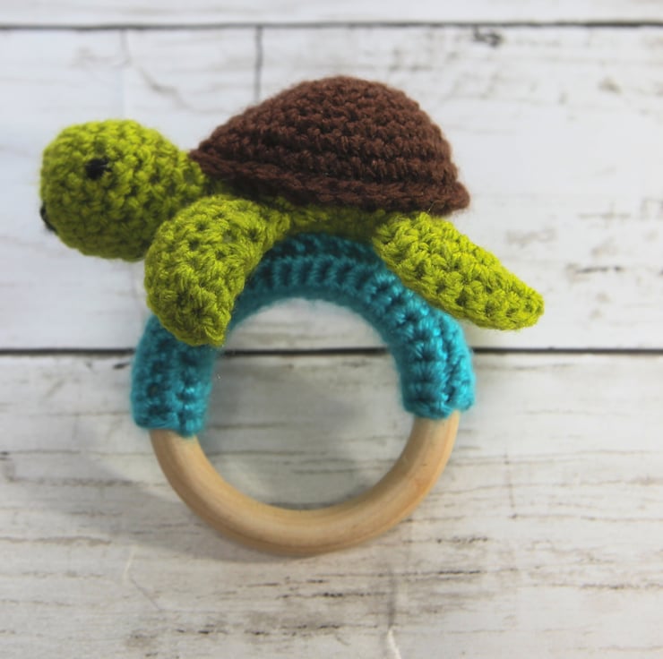 This super cute turtle teething ring makes the perfect gift for newborns or as a baby shower present.