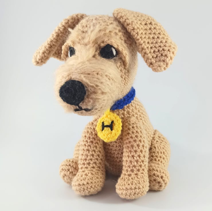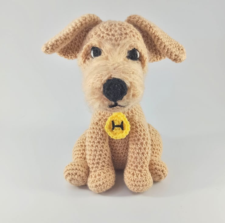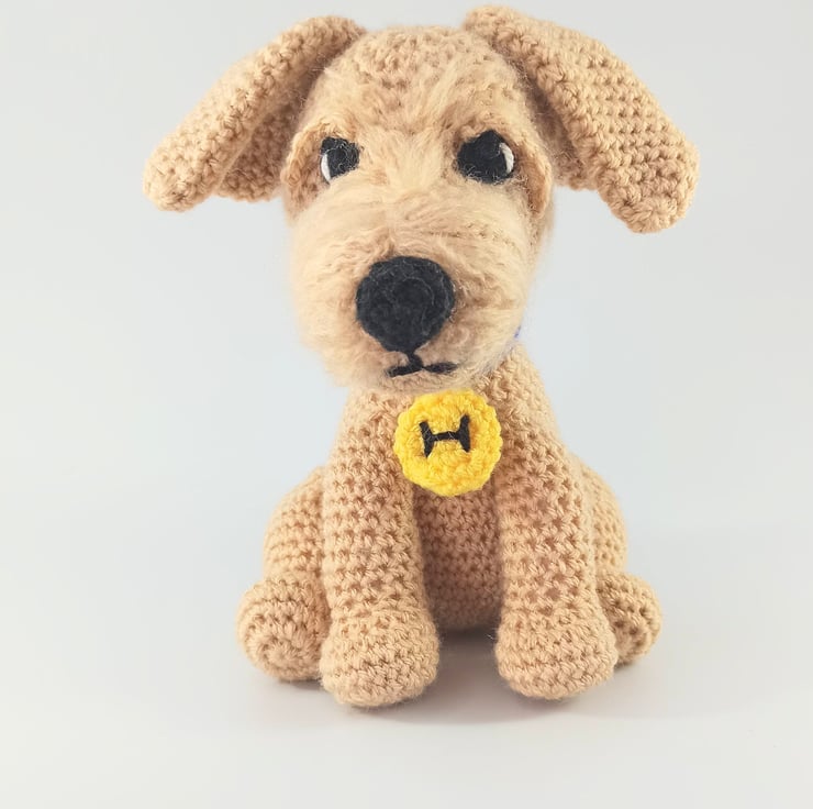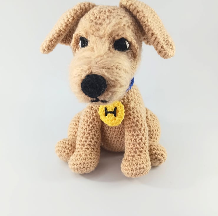 This super cute little terrier type dog makes the most adorable companion. Made to order so all colours can be adjusted to suit personal preference. He can also be made with 'Safety eyes' (suitable for over 3's) or with crochet sewn eyes (safe for newborns).