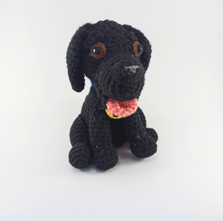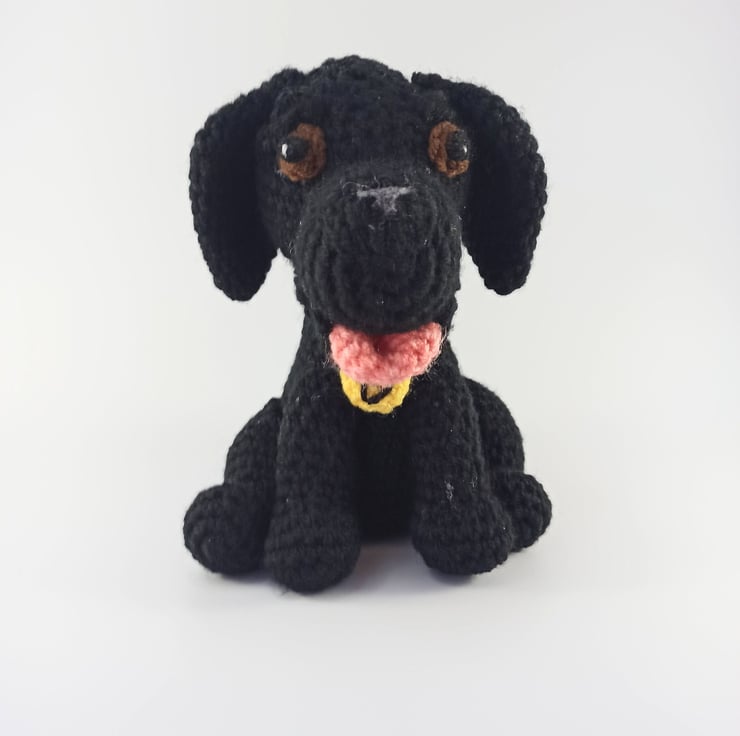 Crochet Labrador dog soft toy, plush stuffed animal, Black lab, personalised gif