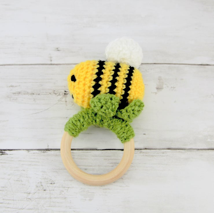 This super cute bumblebee teething ring makes the perfect gift for newborns or as a baby shower present.