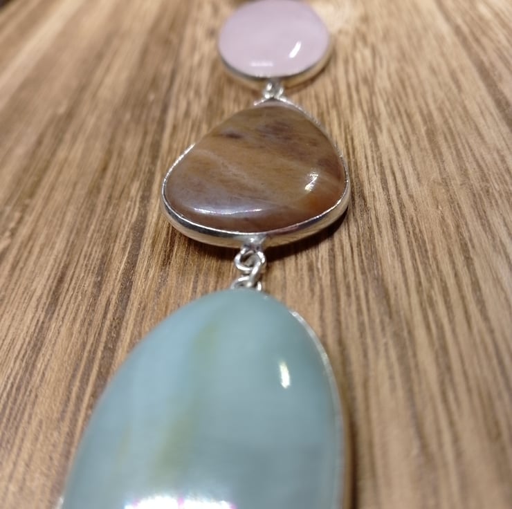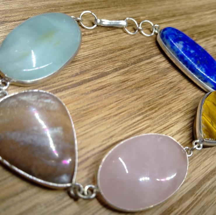 Beautiful mix of gemstones very pretty very positive colours , I picked my favourites and added them on to this lovely bracelet with the bezels being 925 plated silver