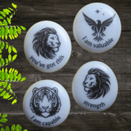 Made to order, there are a choice of two different designs. These pocket hugs make lovely gifts to let someone know how special they are. Affirmations have been proven to improve mental well-being and these pebbles are not only smooth and sensory, they also retain the heat when held. Perfect for those quiet moments.