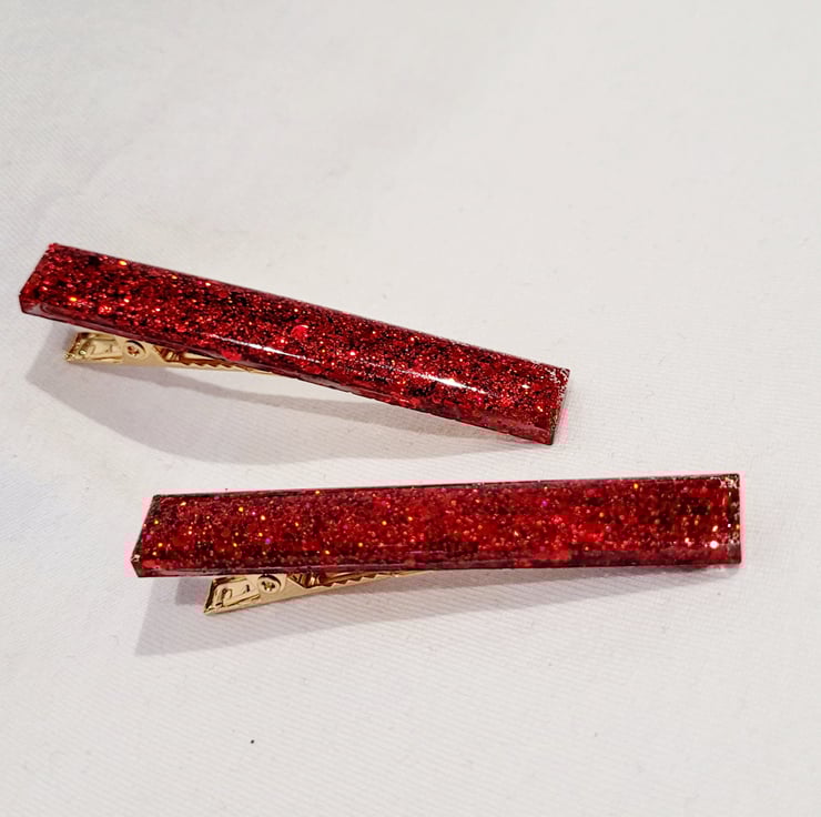 Inspired by bold red sparkle and a touch of dramatic magic, these clips are all about confident glamour and fiery enchantment. Think ruby starlight with a hint of unicorn mischief — designed to dazzle, captivate, and turn the everyday into something wonderfully magical.