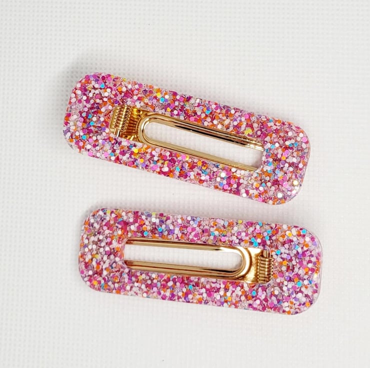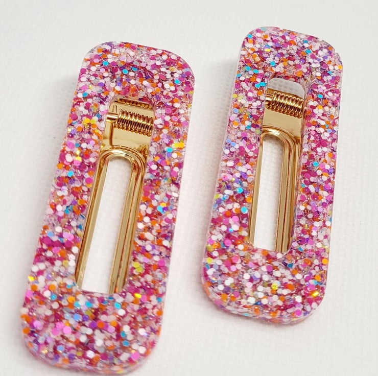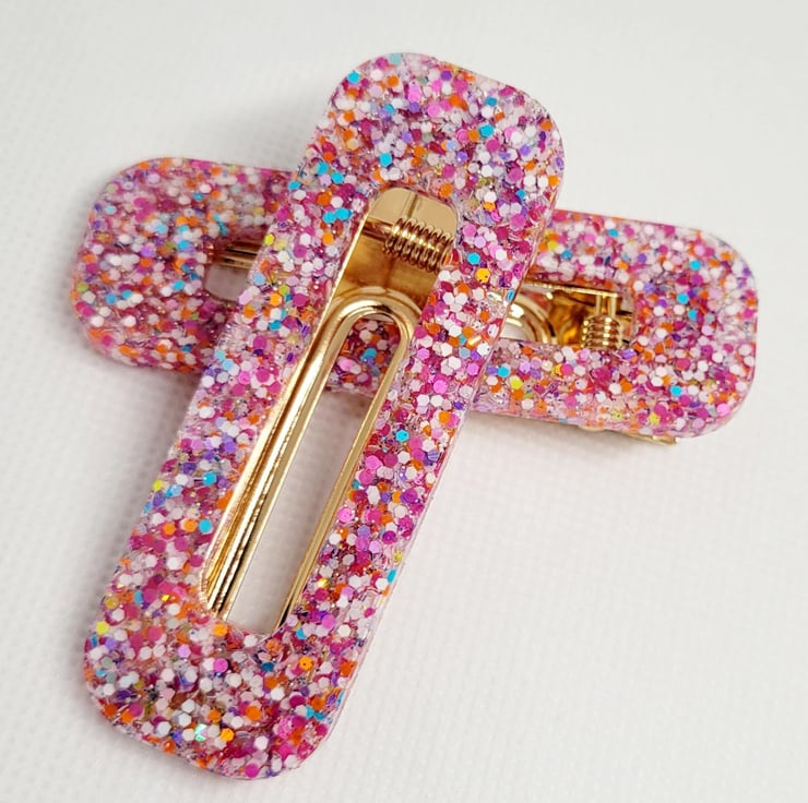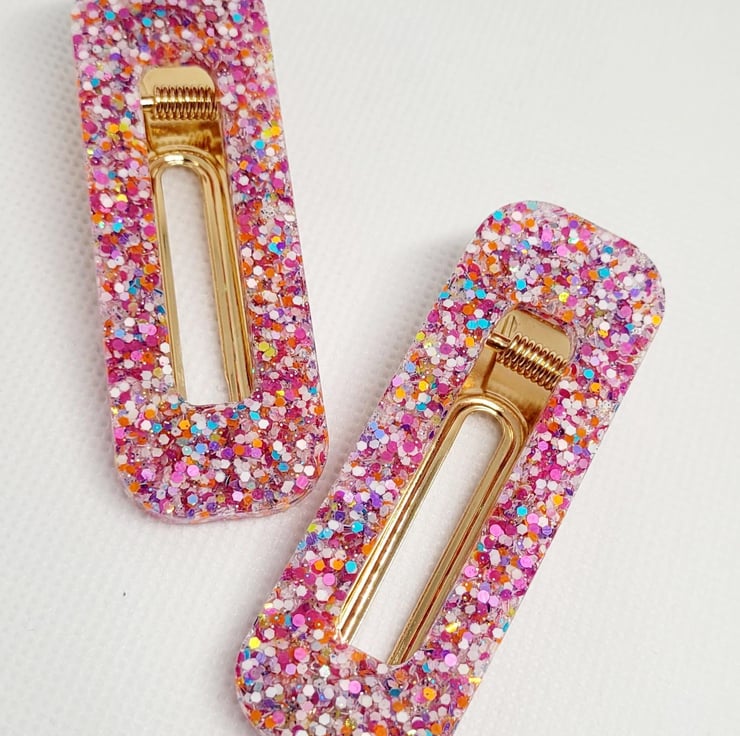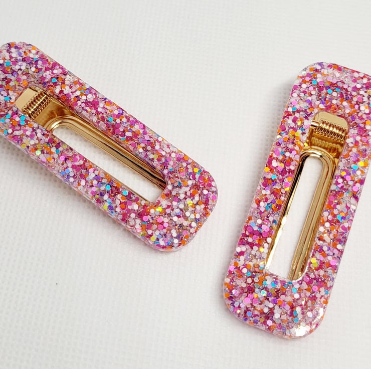 The photo shown in this listing is an example of what you are purchasing. Each hair clip is lovingly handcrafted to order, so you may notice slight differences in glitter placement, colour swirls, or crystal positioning. These tiny variations are part of the magic and make every piece uniquely yours.