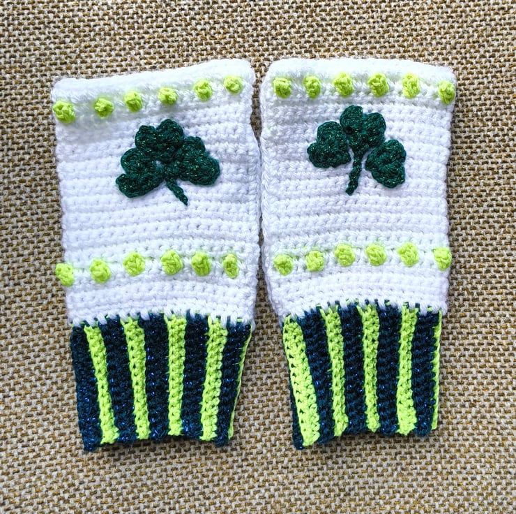 Shamrock Crochet Fingerless Gloves