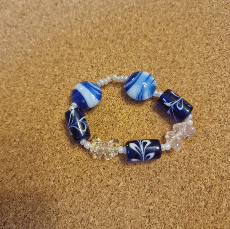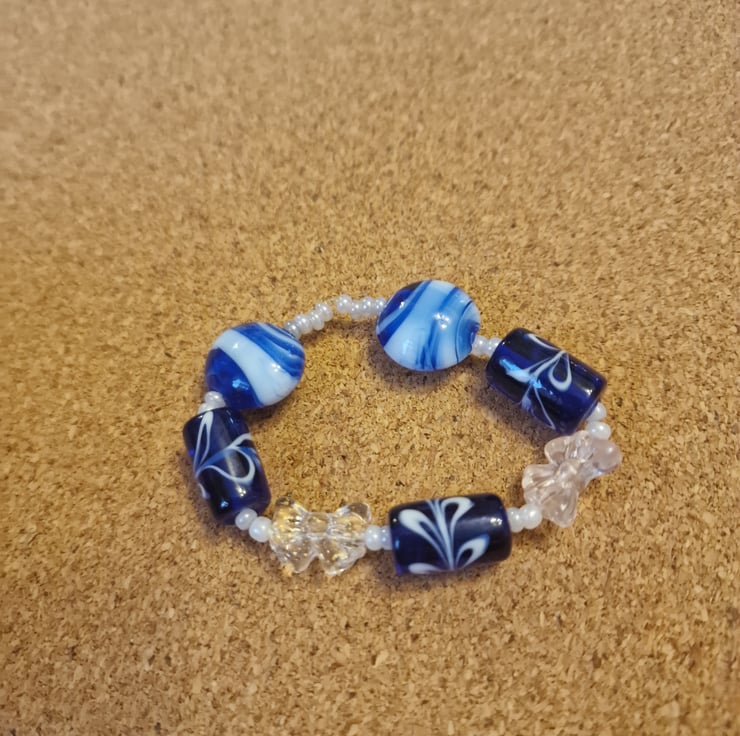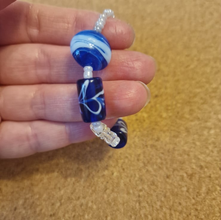Navy two tone lampwork beaded bracelet small size.