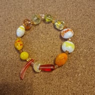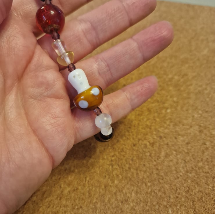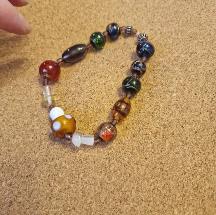Brown tan lampwork beaded bracelet with mushroom beads large size.