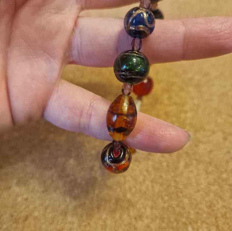 The beads are medium size . Held together by 0.6 size jewellery string.