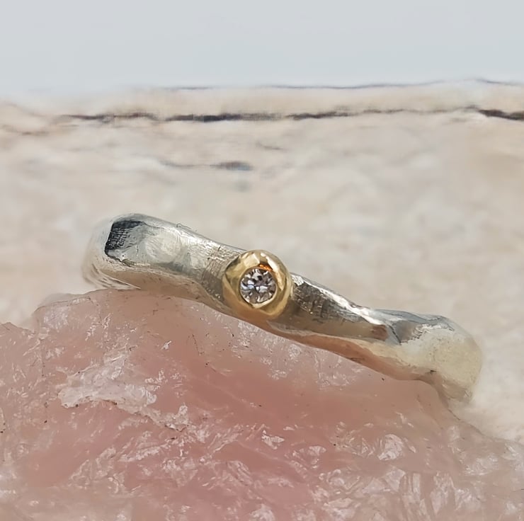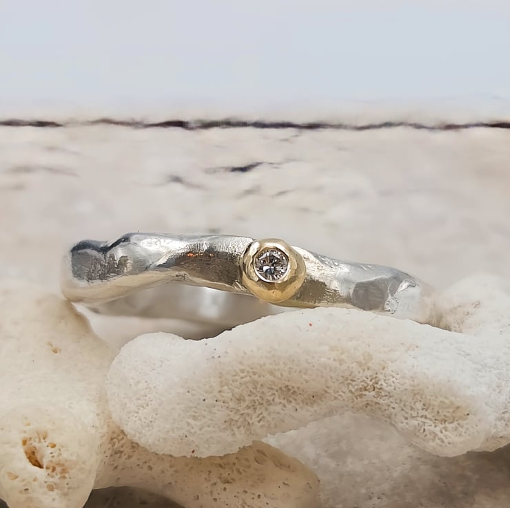 Capture the magic of individuality with a one-of-a-kind sterling silver and gold ring, highlighting a luminous lab diamond centrepiece. Perfect as an alternative engagement ring, this piece combines elegance with a touch of the extraordinary.