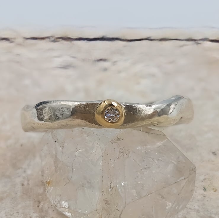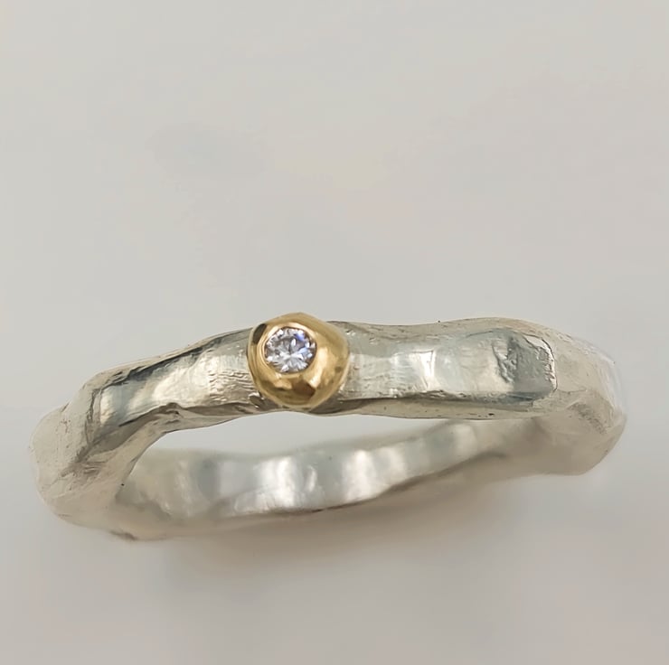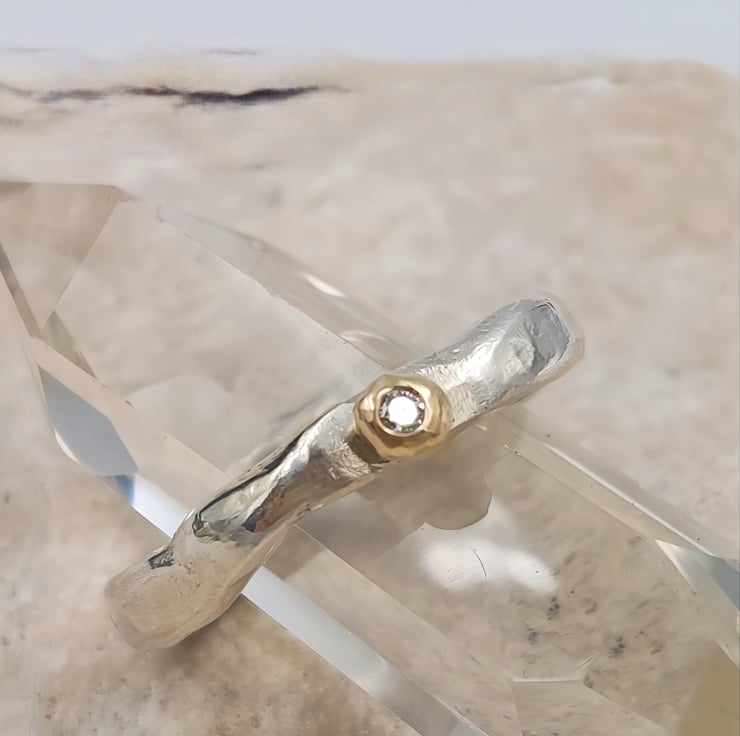Luminous Sterling Silver & Gold Diamond Ring - Size O