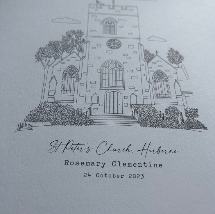 This is a bespoke illustration of the Christening venue which can be fully personalised with the child's names, name of the Christening venue and date of the Christening.