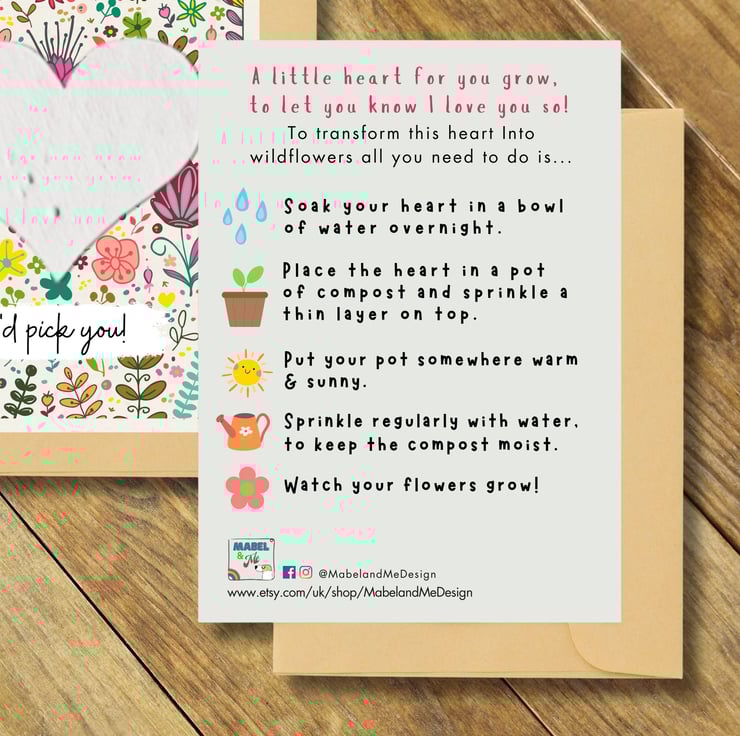 Once the card has been gifted, the heart can be detached and planted to transform into beautiful flowers.