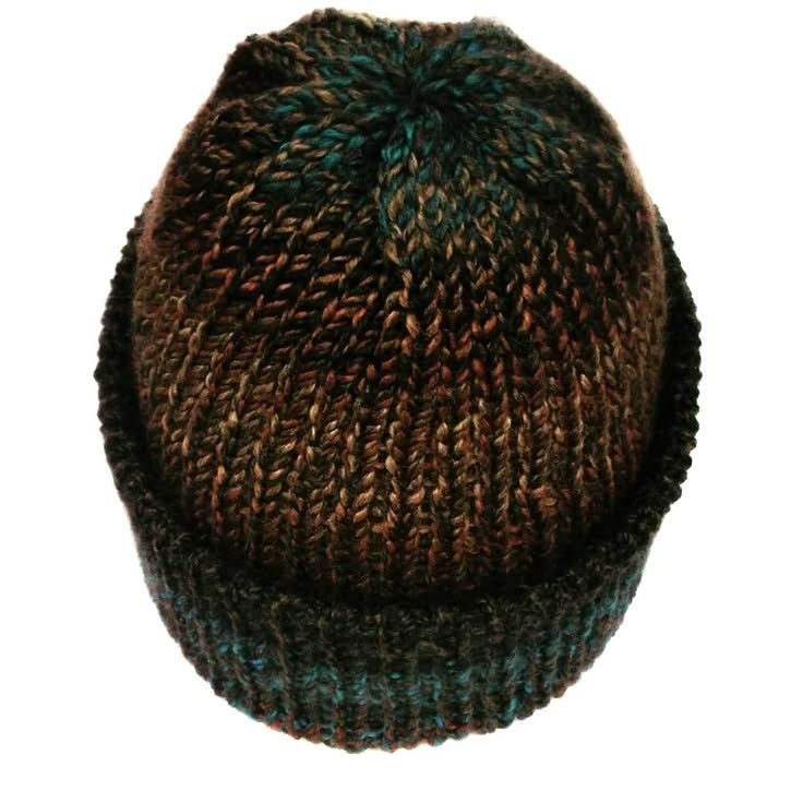 Handmade Kodiak fisherman beanie hat, brown and teal, one size fits all, acrylic yarn.