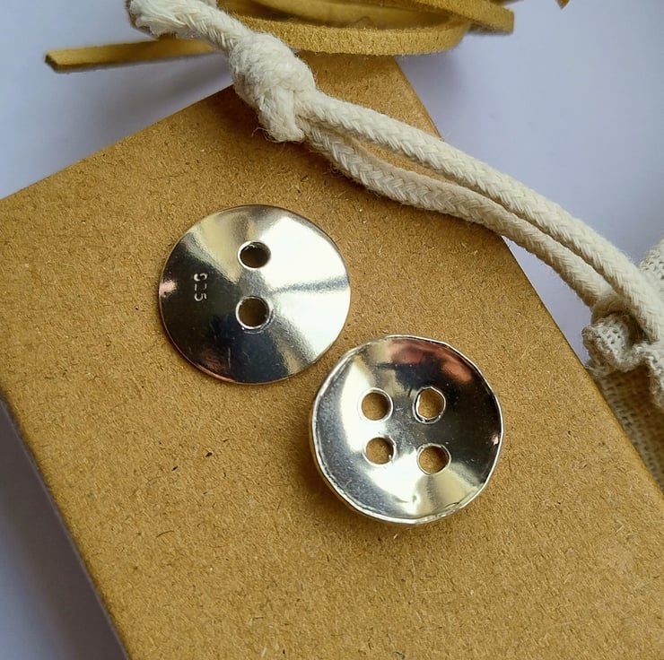 Handmade Sterling Silver Concave Buttons – 925 Artisan Fastenings - Set of 2