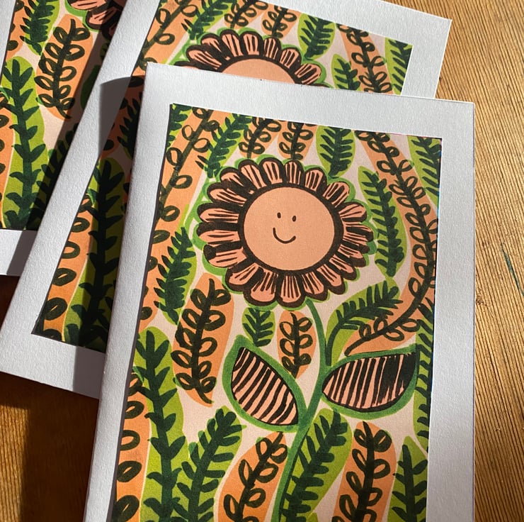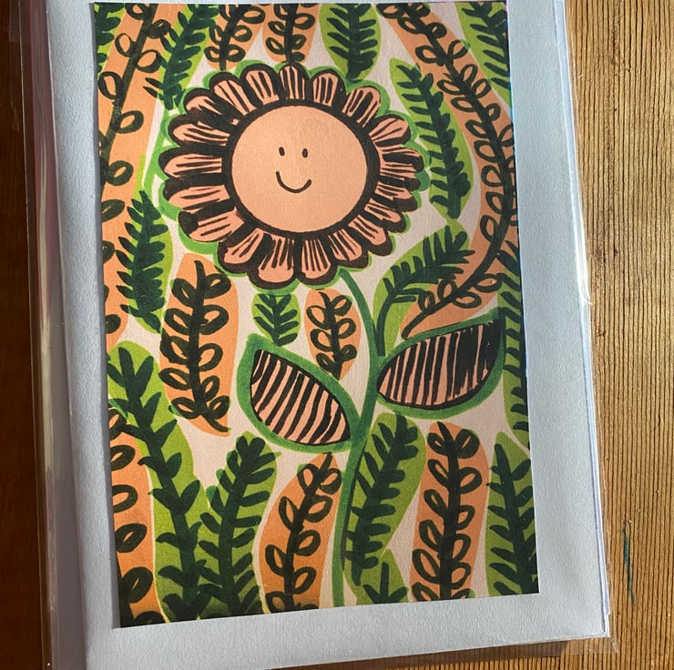 Vintage inspired happpy flower designs in greens and peach drawn by Jo part of my Baby Bean collection . Card measure 13 cm x 18 cm and are blank inside .