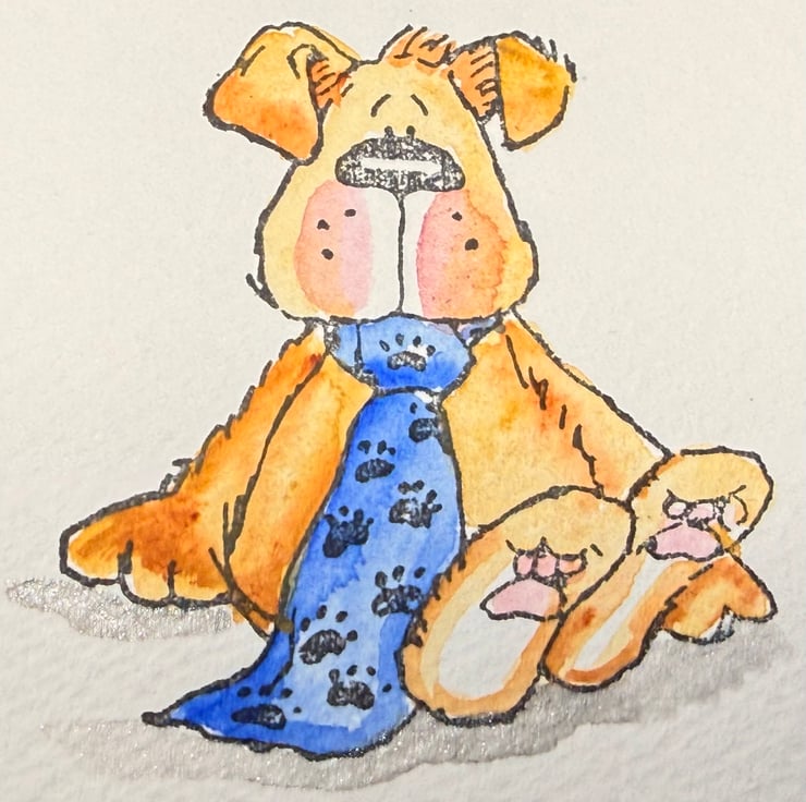 These little characters begin as a moment of quiet focus. I sit with the soft outlines of each Penny Black animal — the dog with his heart balloon, the fox with its gentle expression, the sheep, the bunny with carrots, the dog in his tie — and let the brush bring them to life one by one. Painting them helps me slow down and settle into a calmer rhythm, and each tiny scene becomes its own pocket of joy. This mixed set feels like a handful of small stories, each made with care and intention, and I hope they bring the same warmth and lightness to the gifts they’re tied to.