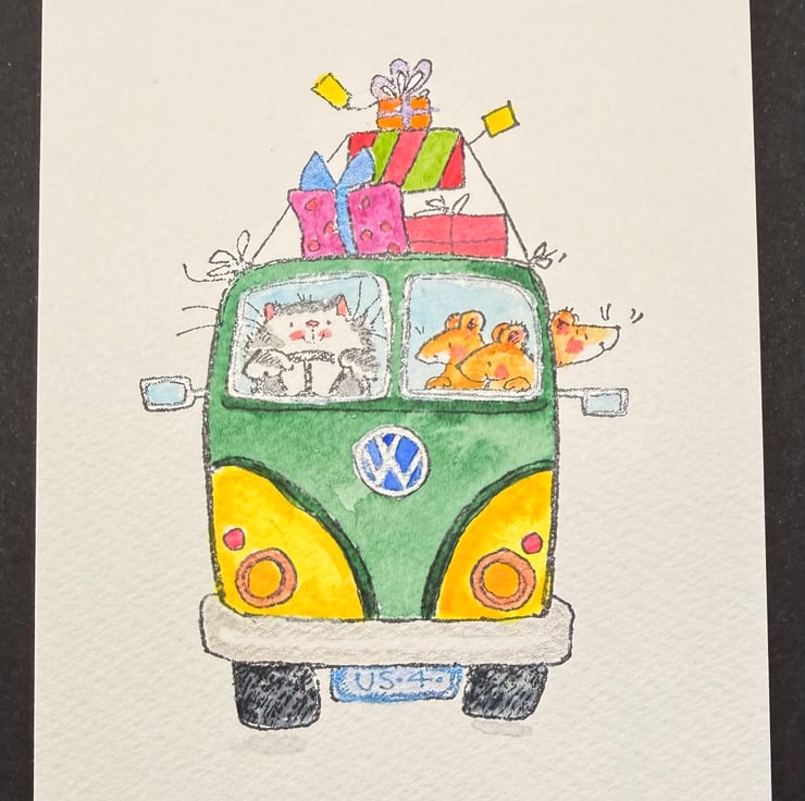 Each card is individually painted, making every piece a tiny original artwork. The watercolour adds warmth, delicate shading, and a sense of storybook charm, while the crisp stamped outlines keep the characters instantly recognisable. The cards are blank on the reverse, ready for your own message; perfect for birthdays, thank yous, thinking of you notes, or simply sending a smile.