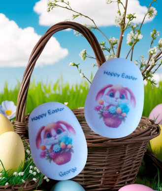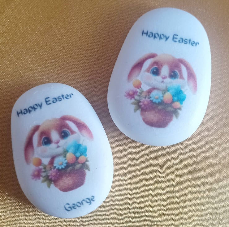 These cute Easter Bunny pebbles make great additions to an easter basket, or as a special keepsake on it's own. Each pebble comes presented gift wrapped and in a decorative bag.