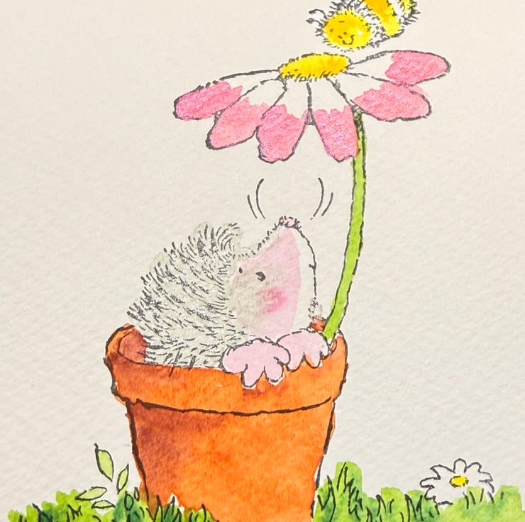 2. A hedgehog nestled in a flowerpot, peeking out with sweet curiosity.