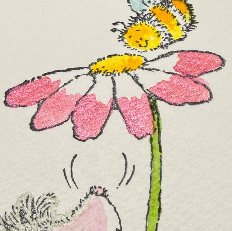 Each postcard is individually painted, making every one a tiny original artwork. The watercolour adds warmth, delicate shading, and a sense of playful storytelling, while the crisp stamped outlines keep the characters instantly recognisable. The reverse side is left blank, ready for handwritten notes, journalling, display, or gifting.