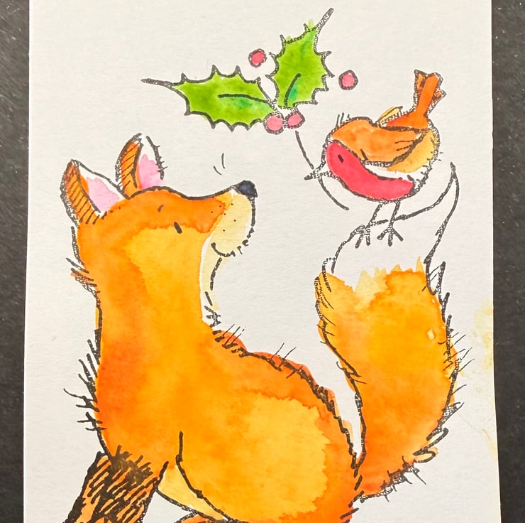 These festive characters begin with a quiet moment of calm in the middle of the season’s bustle. As I paint the skating reindeer, the sleepy hedgehog, the dog with his stocking, the robin on his branch, the fox greeting the mistletoe messenger, and the sheep in its Santa hat, I settle into a slower rhythm. Each tiny illustration becomes its own pocket of joy — a small reminder of the gentle, playful side of Christmas. I hope these tags carry that same warmth, nostalgia, and lightness to the gifts they’re tied to.