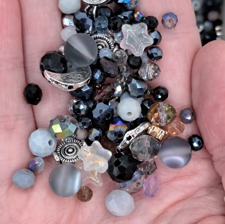 This mix of glass beads is inspired by the "Galaxy", all colourful, if a little dark and mysterious.