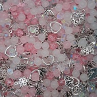 Silver and gold coloured charms, mixed with glass star-shaped beads and other smooth and multifaceted beads.