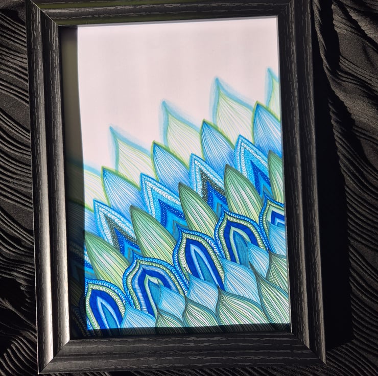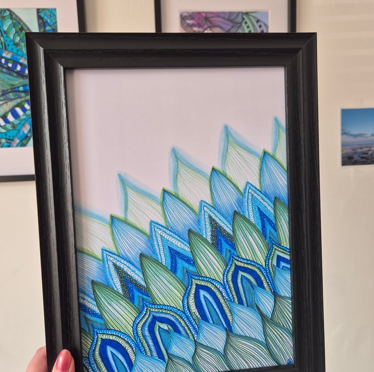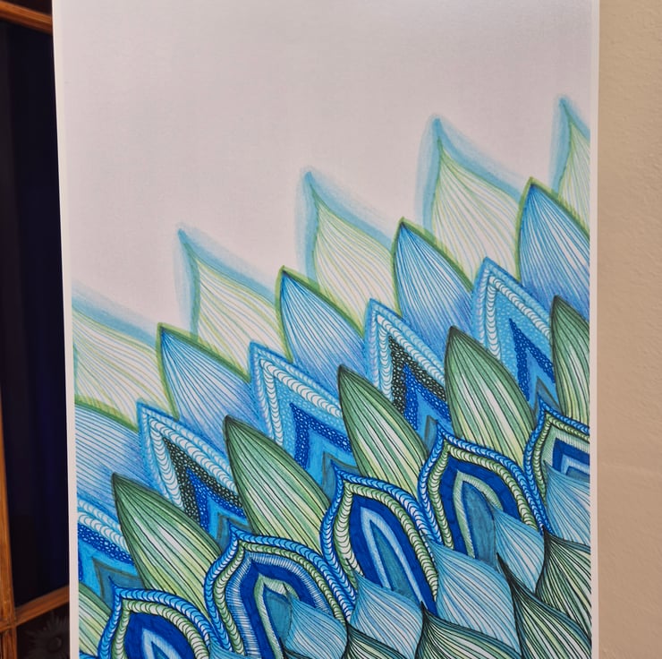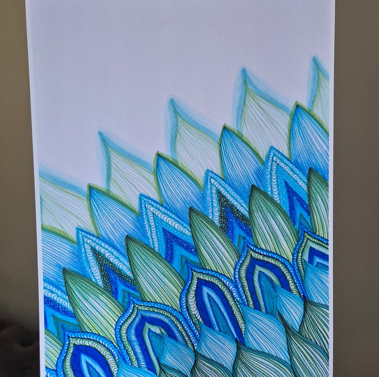 Abstract Zentangle Art - A4 Unframed Print - Peacock