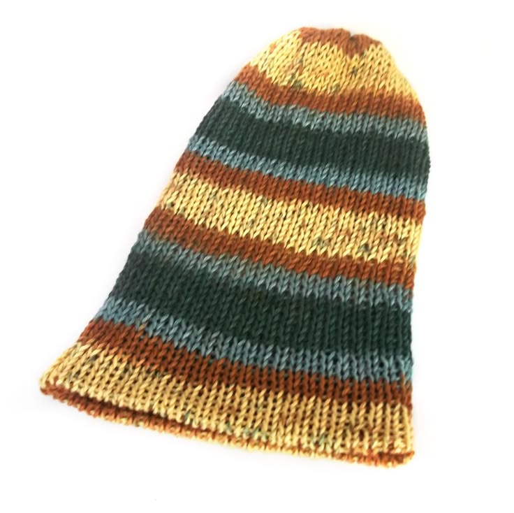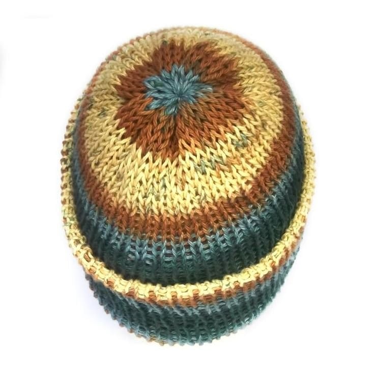 The natural blend of blue, green, and brown tones creates an earthy, calming look inspired by nature. Designed as a unisex beanie, it features a flexible one-size-fits-all fit that comfortably adapts to most head sizes. A simple, stylish piece that adds a relaxed, handmade touch to any outfit.