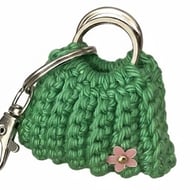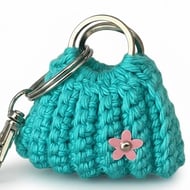 Cute little bad keyring. Can hold ear buds and spare change inside.