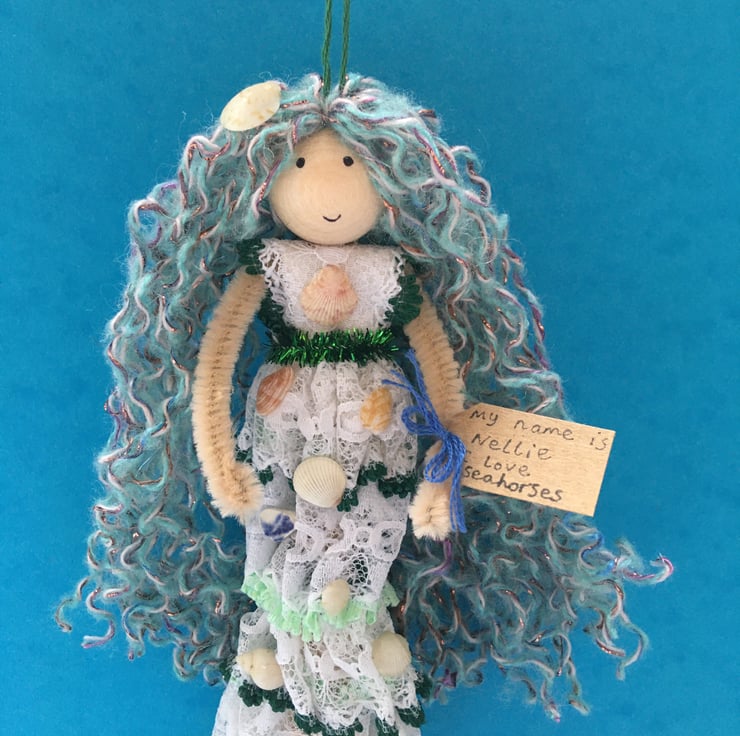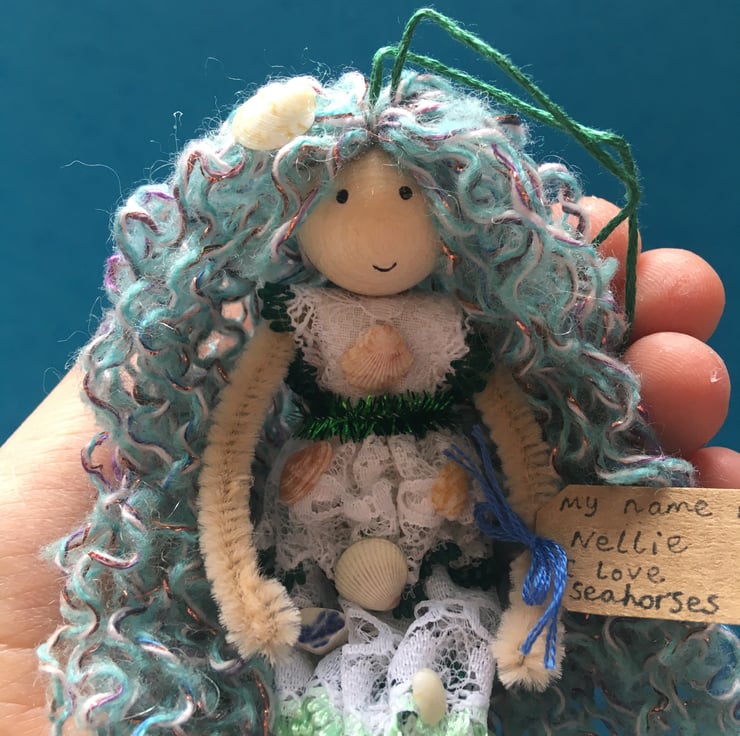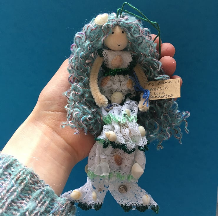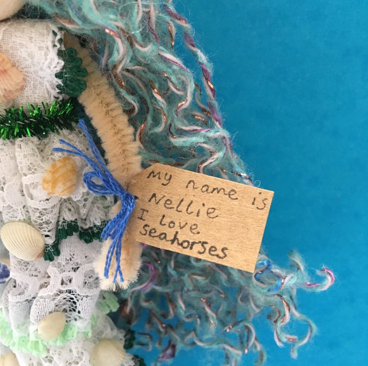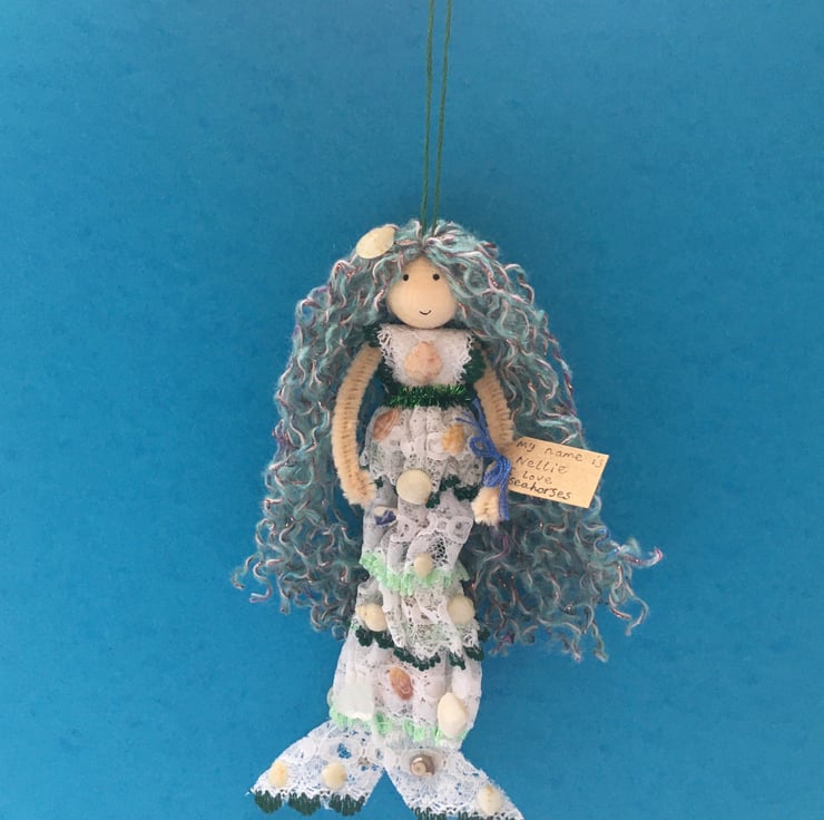 She has a tag, which has her name on and something that she loves. This mermaid is called Nellie and she loves seahorses.