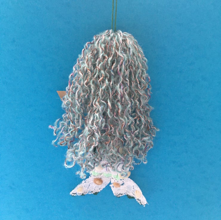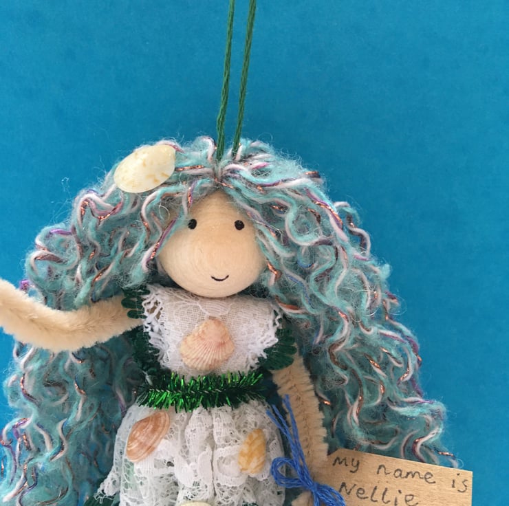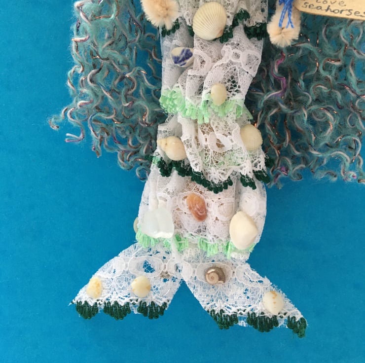 She has a lace tail, embellished with tiny sea shells foraged from beaches in Cornwall.