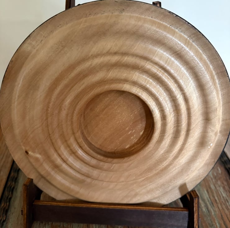 A unique, hand-turned wooden plaque crafted from poplar and finished entirely by hand. The 20cm diameter piece features a carved shield-style design that adds depth and texture to the surface.