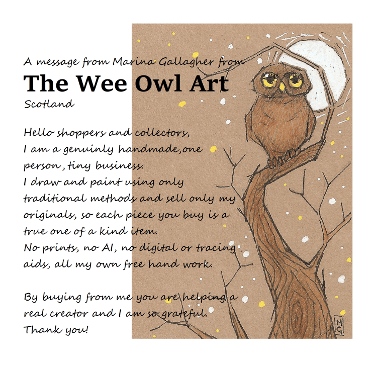 I am a professional artist from Scotland. I sell only my original drawings and paintings here, no prints.