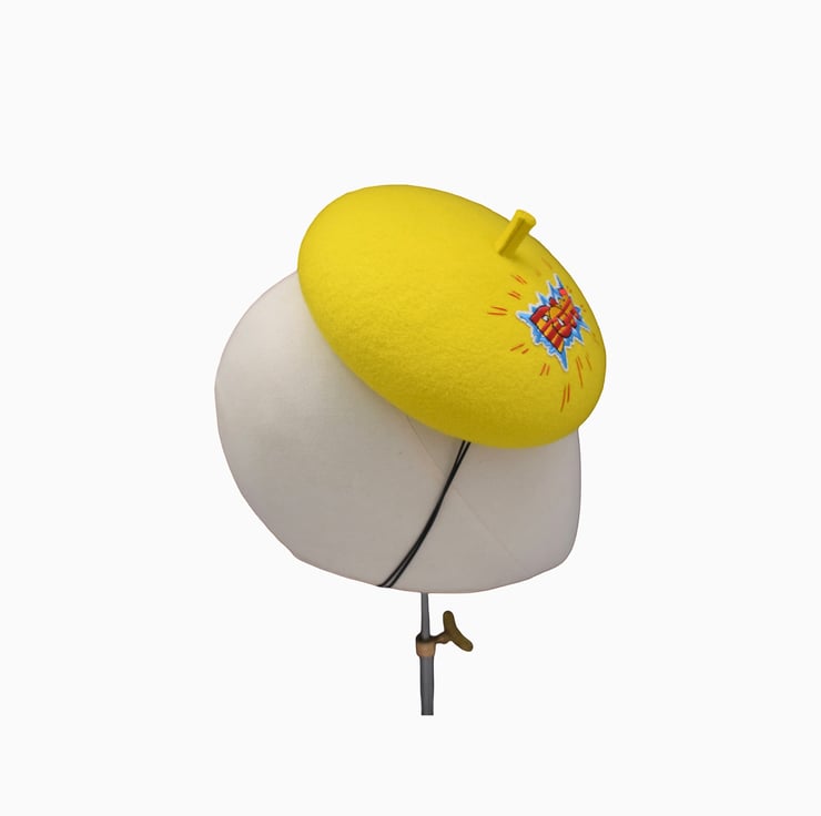 This vibrant yellow beret mixes Parisian chic with punk rebellion. Giving arty, student vibes, it has a playful charm to lift your mood and brighten the day,