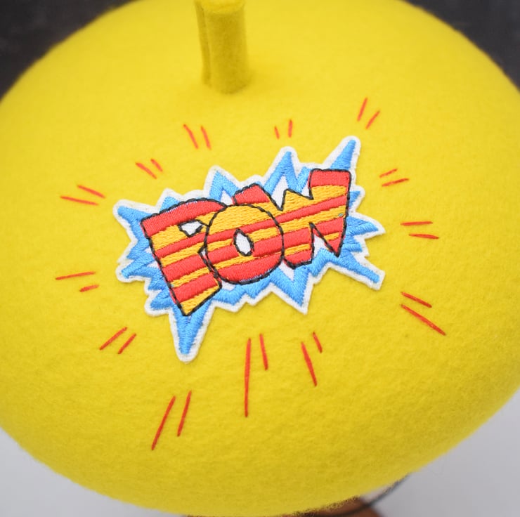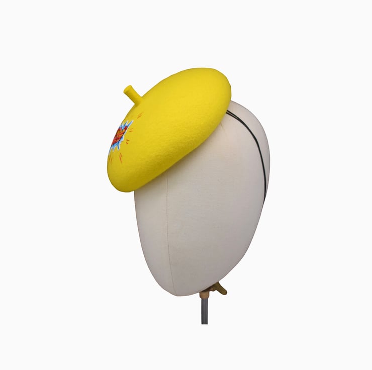 This statement headpiece in vibrant yellow is a one of a kind as the felt colour is no longer available.