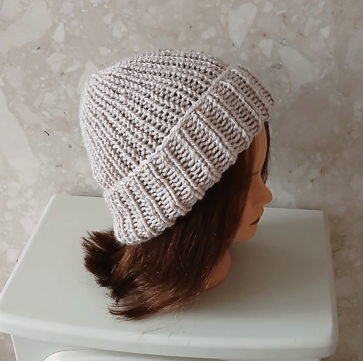 This listing is for a chunky ribbed beanie hat.