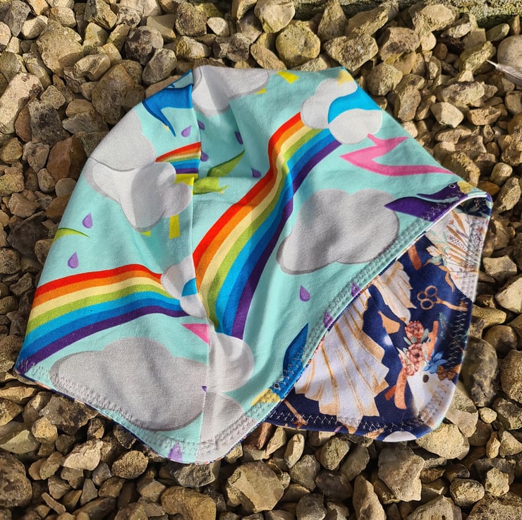 Fully reversable stretchy hat shaped to cover your ears and slim enough to fit under a helmet. Perfect for cycling trips throughout the year. Adult M is designed for a 22 inch head circumstance.