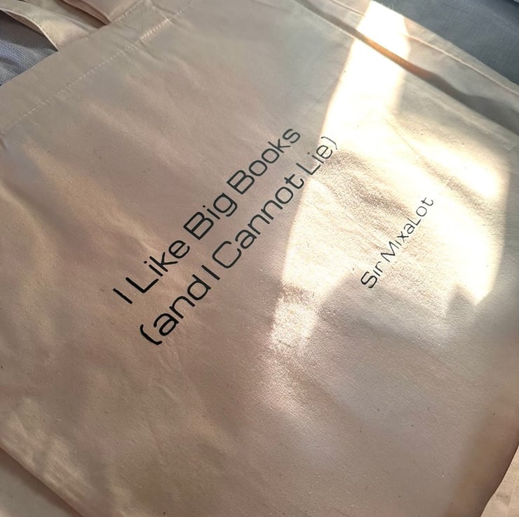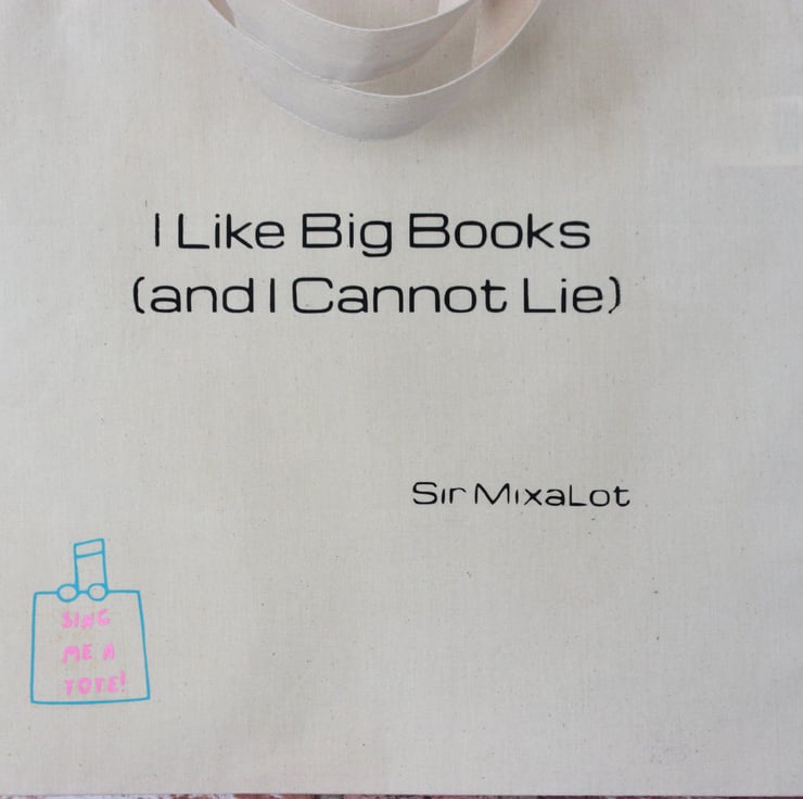 Thank you for looking at our hand crafted cotton tote bags featuring a song pun from a popular Sir Mixalot song.