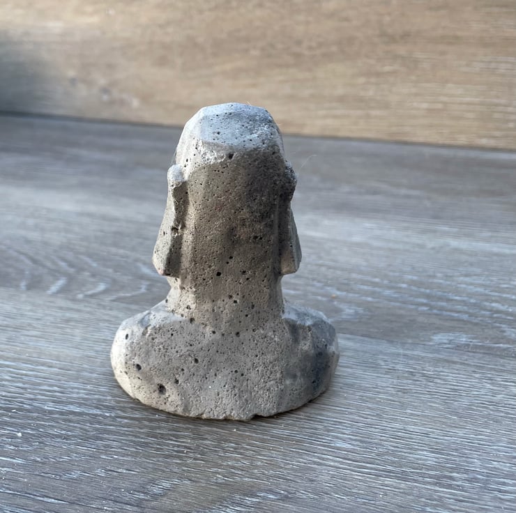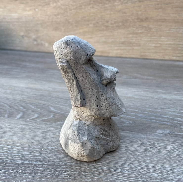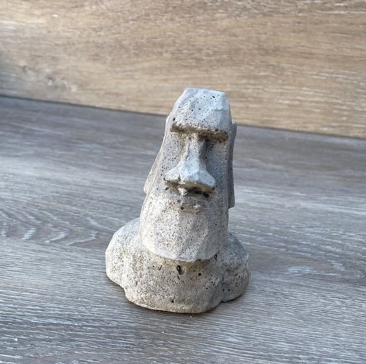 Easter Island small statue 90x 70 x 55 mm made this with two cement mixtures has a silicone film on base and happily to live both inside and out