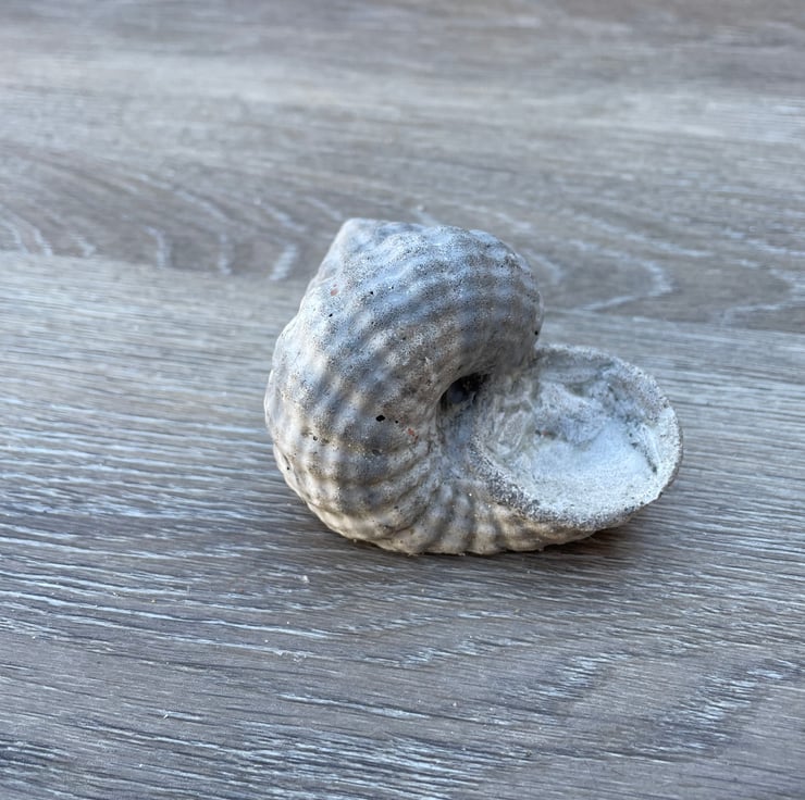 This cephalopod sculpture is a replica of a fossil measuring 80 x70 x 40mm made in grey cement with other mixtures to give it an antiquated look
