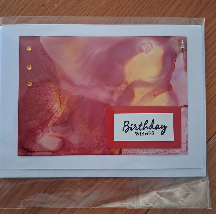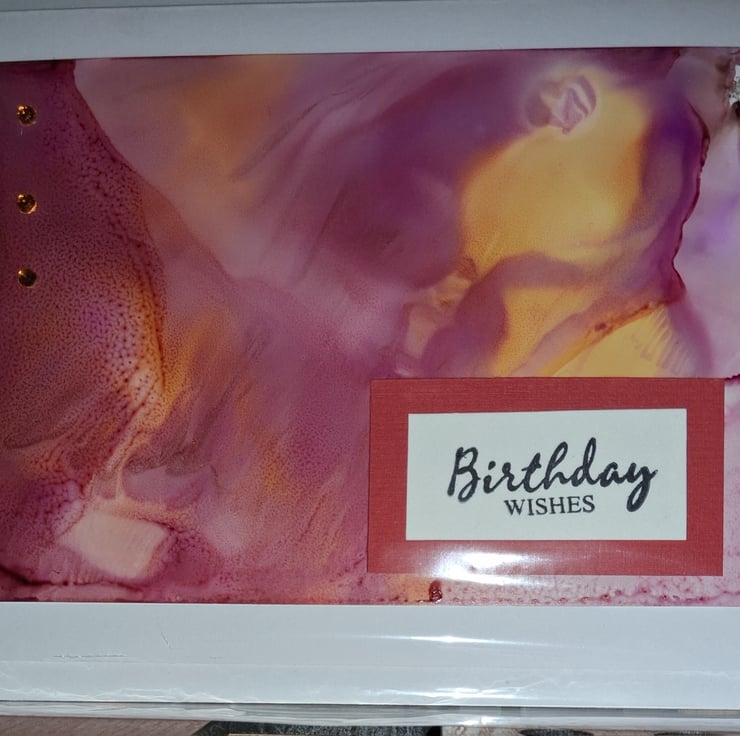 Handmade made card made using alcohol inks. Shades of yellow, peach and pink. Envelope included.