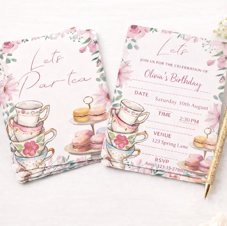 Beautifully styled celebration with our Handmade Afternoon Birthday Party Box, perfect for elegant birthdays, garden parties, or afternoon tea celebrations. Featuring soft pastel florals, watercolour cakes, bunting and charming tea-party details, this box is designed to make hosting effortless and memorable.