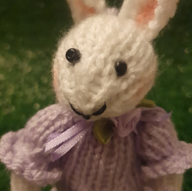 Little Prue is dressed in lilac and carries a garland wishing you 'Happy Easter'.She measures approximately 6 " tall and can stand on a shelf or table or be hung up.