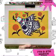 Created from my original design, the print you receive is hand printed on Japanese Ho-Sho paper, in black Cranfield ink. It is a mis-print so will be slightly imperfect, but still beautiful. The print measures approximately A3 and is unframed and unmounted. It will be wrapped in recycled tissue paper and sent in a tube/reinforced envelope.