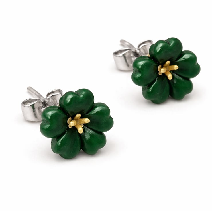 The glossy resin finish was added to give the flowers a fresh, dewy look, almost like petals glistening after rain. Combined with the small size and sterling silver fastenings, the design focuses on creating lightweight floral jewellery that feels delicate, cheerful, and easy to wear every day.
