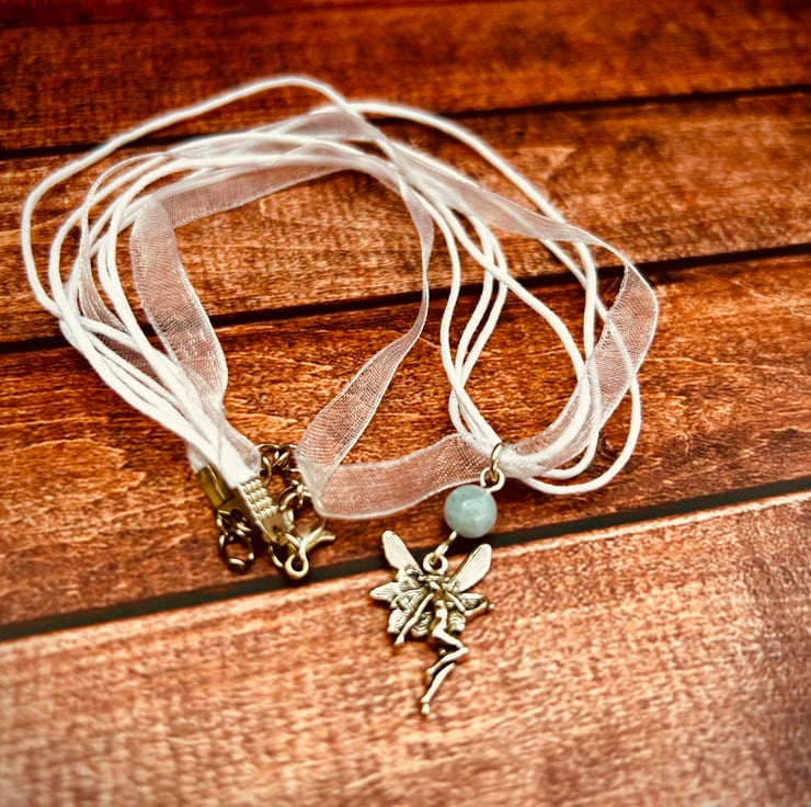 The soft pastel tones of Morganite pair perfectly with the flowing organza ribbon necklace, creating a light, whimsical design inspired by nature and fantasy. The detailed fairy charms add a magical touch, making this set perfect for anyone who loves fairycore, boho, or nature-inspired jewellery.