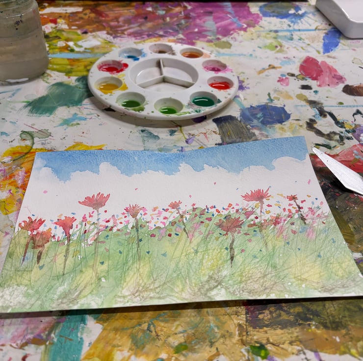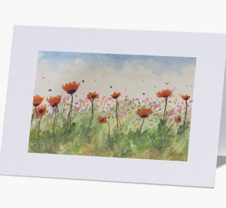 Transitioning from a single painting to a finished greeting card is a very rewarding process - capturing the feel of a wildflower meadow.